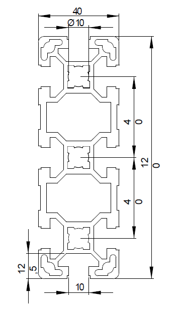 Profilé aluminium 40×120 Léger avec 8 rainures de 10mm