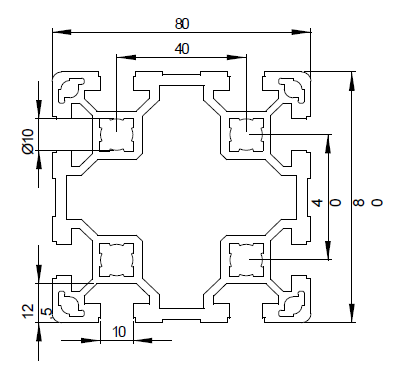 Profilé aluminium 80x80L avec 8 rainures de 10mm