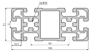 | Caractéristiques : – Alliage : 6060 T5 AL – Couche d’anodisation : 10µm – Taille de rainure : 10mm – Type de profil : B – Couleur : gris alu – Usinages : Taraudage M12 | ![]() |