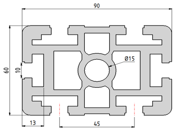| Caractéristiques : – Alliage : 6060 T5 AL – Couche d’anodisation : 10µm – Taille de rainure : 10mm – Type de profil : B – Couleur : gris alu – Usinages : Taraudage M16 | ![]() |