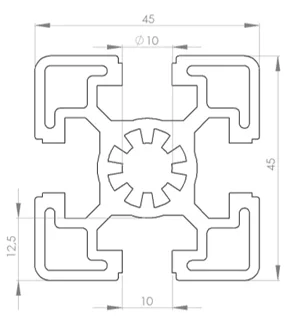 Profilé aluminium 45×45 Lourd avec 4 rainures de 10mm