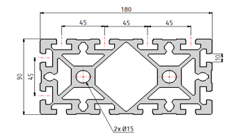 Profilé aluminium Aluneed TB 90×180 lourd, 4 faces ouvertes avec 12 rainures de 10 mm