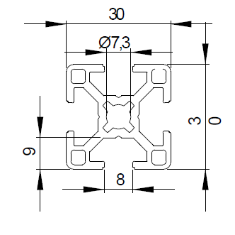 Profilé aluminium 30×30 avec 4 rainures de 8mm