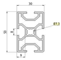Profilé aluminium 30×50 avec 4 rainures de 8mm