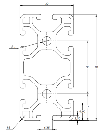 Profilé aluminium type I 30×60 avec 6 rainures de 6mm
