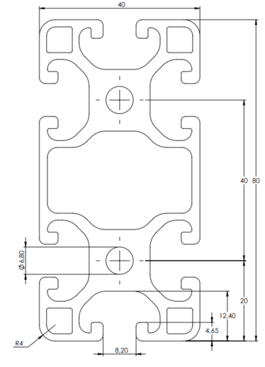 Profilé aluminium type I 40×80 avec 6 rainures de 5mm